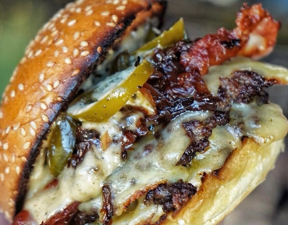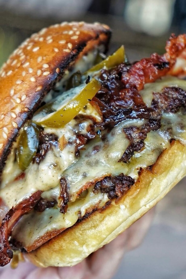The Bacon Cheese Aged beef patty, smoked bacon, American cheese, BBQ sauce, seeded bun. | |